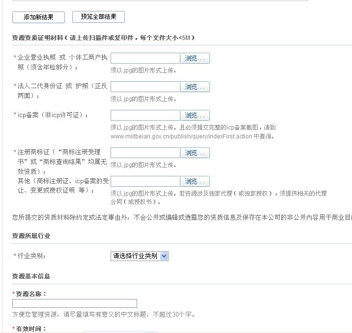 按照要求,上传扫描件,资源名称填你们的品牌名称,按照要求填完后提交成功后会弹出来一个窗口,等待审核,正常情况下是5个工作日,也就是一周的时间,5个工作日过后,千万不要傻等,在http://open.baidu.com/data/ms/userzone/登录你的百度账号,点击我的资源 查看左侧的资源列表,如果已经生效,在已生效资源里可以看到,这个时候在百度上搜你们公司的品牌名称,应该在百度前三位可以看到你们公司经过百度安全认证的客服电话,下面还带你们公司的官方网站网址。如果没有生效,就要点开未生效资源,在里面可以看到提示信息,是由于哪一项不符合条件没有审核通过,按照要求修改后再次提交,就可以了,这里面容易难住大家的就是ICP备案这个截图,这个截图一定要从人家指定的网站去查询,www.miitbeian.gov.cn/publish/query/indexFirst.action ,没有备案的网站域名是不能认证的,在这一步很多人容易犯错,找不到备案信息,可以按照我的方法输入你们的公司域名查询快速找到,如图步骤操作: