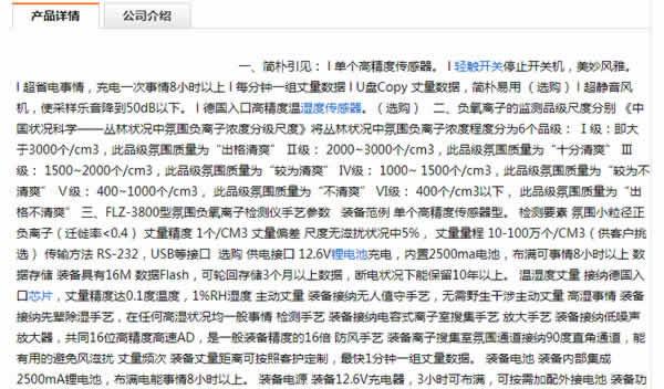 1、标题撰写技巧:关于标题的写法有很多种,我常用的是使用关键词组织标题,2-3个关键词即可。关键词要从产品的不同方面入手,切勿同类关键词累积,这样不利于搜索引擎排名。拿“负氧离子检测仪”这个产品来说,按照使用部门的不同:气象部门,一般称为“大气负离子自动观测仪”,林业部门称为“大气负氧离子自动观测仪”;按照设备大小:可称为“负氧离子监测站/设备/系统”,也可称为“负氧离子检测仪”、“便携式负氧离子检测仪”、“手持式负氧离子检测仪”等等。因此标题我们可以这样写“负氧离子检测仪,大气负(氧)离子自动观测仪,负氧离子监测站/设备/系统”。
