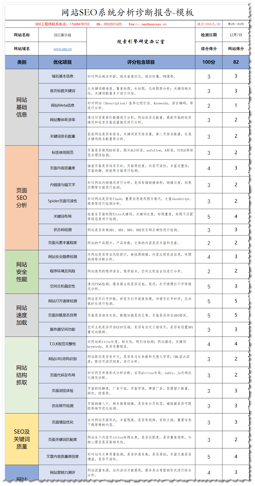 下面分享一份专业系统的《网站SEO诊断打分表》仅供参考学习之用。