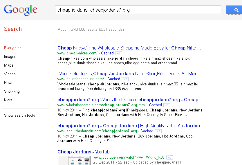 2.检查你的域名中缀,输入到Google中查询,如果你的网站排到50名,或者说第五页,这基本可以确认你的网站被降权惩罚了。如果不是,请继续下一步的判断。