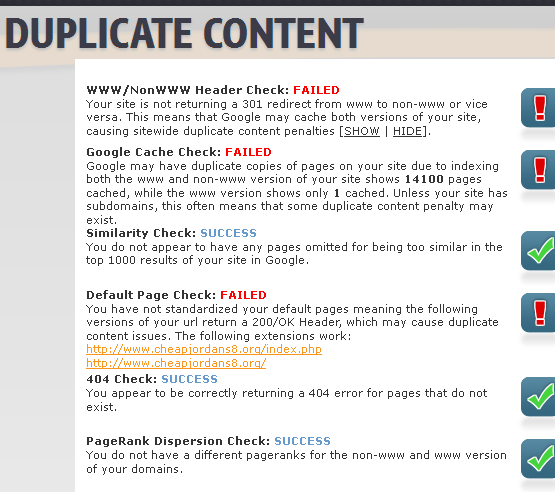 7.使用 http://www.virante.com/seo-tools/duplicate-content 查询你的网站重复内容的问题,看是否是因为网站内容重复而导致的惩罚,如图