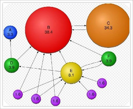 假设有两个页面A和B,B页面通过一个链接指向A页面,那么,B就是A的一个反链。在B网站上有一个A网站的链接,即相当于B网站投了A网站一票,A网站获得的投票越多,权重就越高,排名效果就越好;当然B网站的权重越高,那么A网站获得的投票权重就越高,所以高质量的反链对网站的作用是不容忽视的。一个网站的反链不仅仅包含友情链接,同时包含本网站其他页面的链接。下图即是一个利用反向链接增加网站权重的示意图: