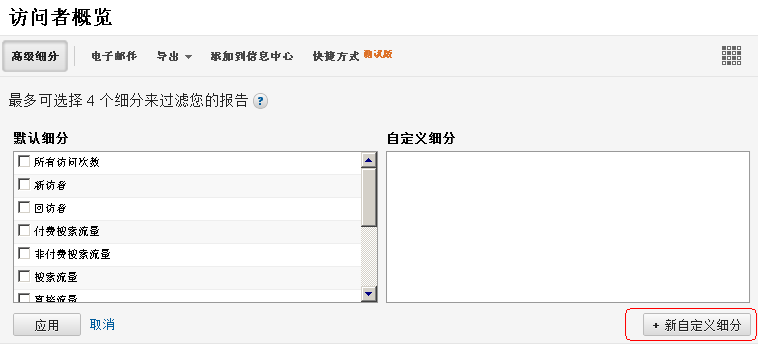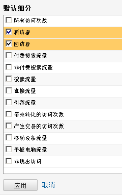 细分的基本单位是:访问(visit),应用了细分后,查看站点数据后,看到的就是符合条件的访问数据了。