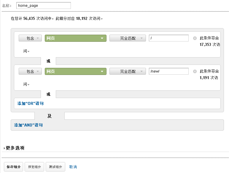 保存前,可以点一下:测试细分按钮,看看相关条件有没有匹配的访问。