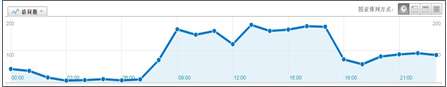 通过24小时中网站访问者的变化趋势来判别虚假流量的方法我们在第一篇文章中就曾经介绍过,按照访问者的作息时间在24小时中会出现三个访问高峰时间段,而午夜时段则会出现访问的低谷。因此如果流量在24小时中不符合这个趋势则十分可疑。例如午夜出现大量访问的情况。那么来看下面这个24小时变化趋势图,你能发现什么问题吗?