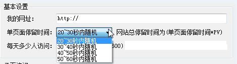 其次是设置虚假流量每次访问的单页停留时间,这里的设置比较粗糙,10秒一个区间。这也就是说当我们看到某些流量在页面停留时间上的变化基本都在10秒以内时,都需要特别关注。