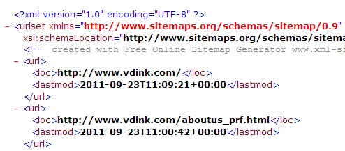 拿到网站后,首先给网站创建网站地图和robots.txt文件,这两个文件可以很好的提升整个网站的收录量。xml版本的网站地图或者html版本的网站地图都可以,在线创建网站地图的方法,大家可以到这里(http://www.xml-sitemaps.com/)创建。我这个站的网站地图就是xml格式的,如下所示: