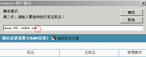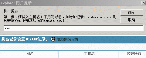2>我们首先来做www.chinamchl.com别名至到空间赠送的三级域名aaaa.w41.cndns.com。 点击"增添别名设置",然后在弹出的框内输入"www",注意,不能输入"www.chinamchl.com"。如下图所示: