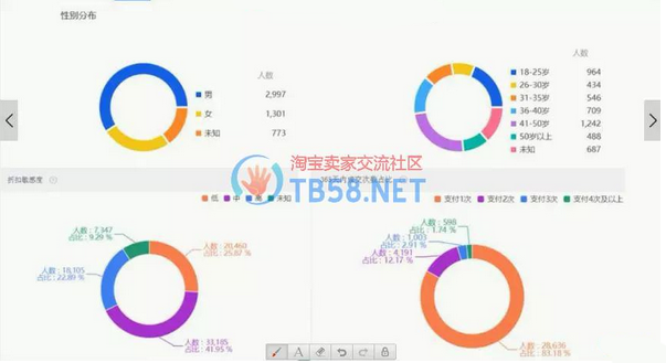 我们再看用户的年龄层次是41-50岁,这个是访客的实际购买的年龄层,再往下还有折扣的敏感度和30天内成交次数占比。