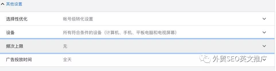 其他设置:设置广告投放设备、频次上限和广告投放时间等。