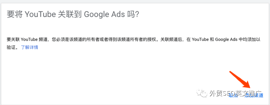 如果Google Ads账号和Youtube频道是同一个谷歌账号,则直接选择”此频道归我本人所有“和前往Youtube。最后,在Youtube页面点击同意关联即可。
