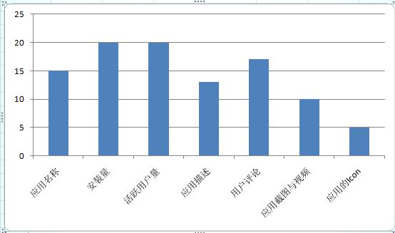 ASO优化基本上从上图上的几个维度展开,比重比例依照本人ASO实践过程的一些总结,因产品属性关系可能与其它资料有些许出入,各位应以自身产品属性并在实践中的效果得出适合自己产品的真实比例。